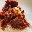 Just heat your palm oil over low heat or vegetable oil, sauté onions, and your meat, add sauce and salt to taste. (dried shrimp optional) Serve it with rice, white rice, and any veggies.